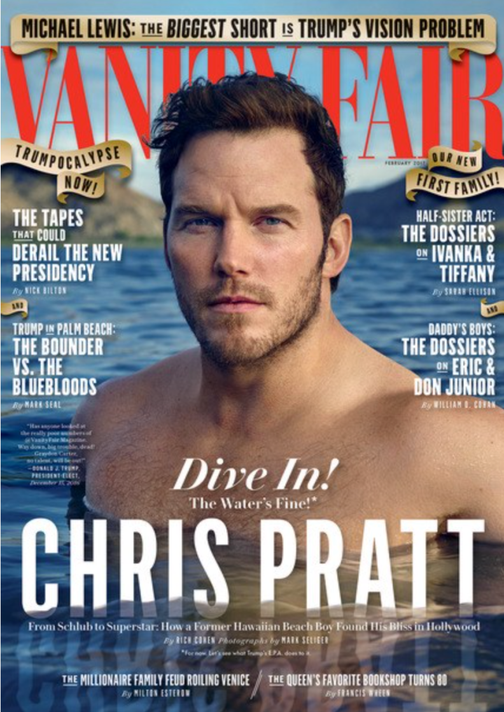 I own a grand total of two Vanity Fair magazines, August 2000 and April 2014. Today, the universe is telling me it’s time to add another VF to the pile. The universe, in the form of a shirtless Star-Lord riveting us all with sultry bedroom eyes, inviting us all to test his chesticles the water. You win, Vanity Fair – you evil, conniving, effective sonofabitch. You win.