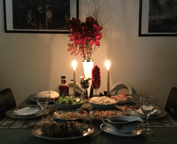 * Cobbled together decor, but truly awesome dinners. I’m not big on decorating the space, but I will skimp on nothing when it comes to a Christmas/New Year’s Eve dinner. Nothing. Turkeys will cry.